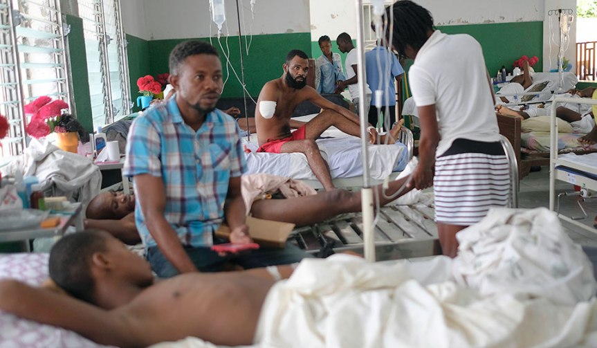 Photo: Felix Pierre Genel, 36, whose arm was amputated after he was injured in the earthquake, is treated at a hospital in Les Cayes, Haiti, Aug. 25, 2021, a week after a 7.2 magnitude quake. The disaster was just the latest in a string of catastrophes that have struck the Haitian people. | Matias Delacroix / AP